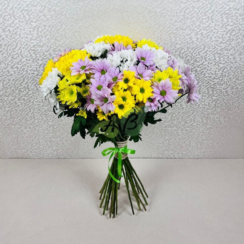 • Хризантема - 25 веток, цвет - разноцветный, длина стебля - 50-60 см;