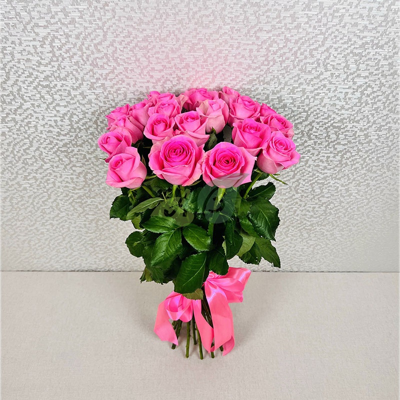 • Роза - 21 штука, цвет - розовый, длина стебля - 60 см;
